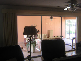 Screen shades on a deck. These are a challenge on a windy day, but look what they do for the view.